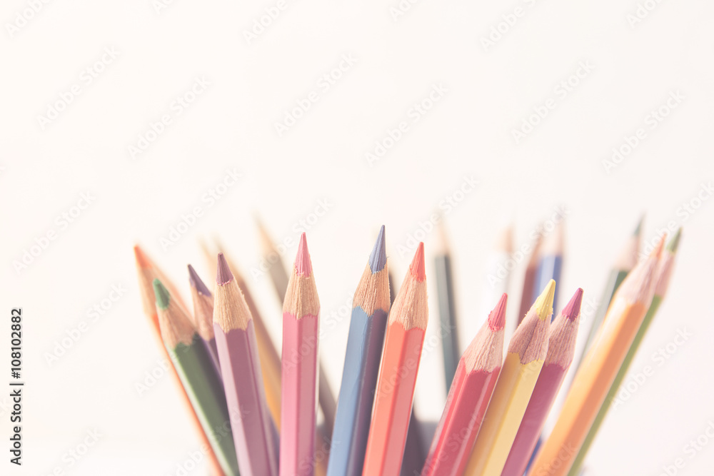 Color pencil with copy space, education frame concept - pastel effect style picture