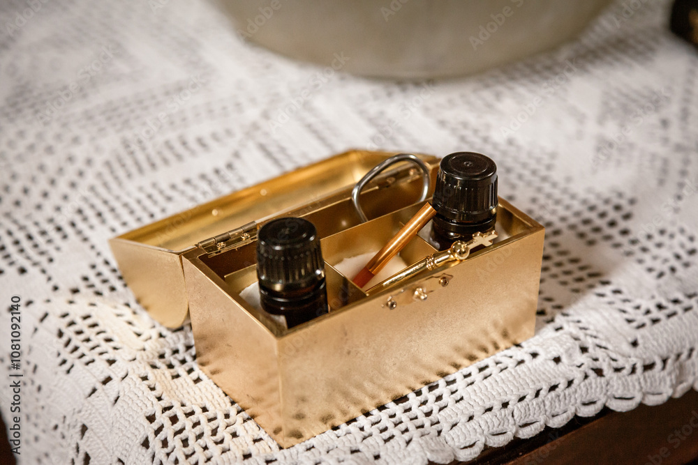 Christening ceremony. Orthodox Christening in the church. Christening details.