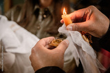 Christening ceremony. Orthodox Christening in the church. Christening details.