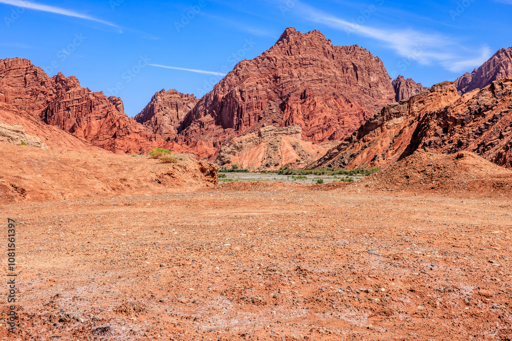 Gravel road square and danxia landform mountain natural scenery in Xinjiang, China. car background.