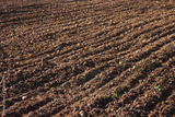 Freshly plowed field in the italian countryside on springtime. Agricultural field on a sunny day