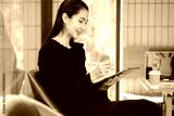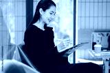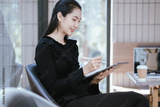 Happy and smiling Asian businesswoman with smartphone with success concept at work