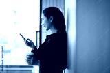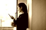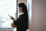 Happy and smiling Asian businesswoman with smartphone with success concept at work