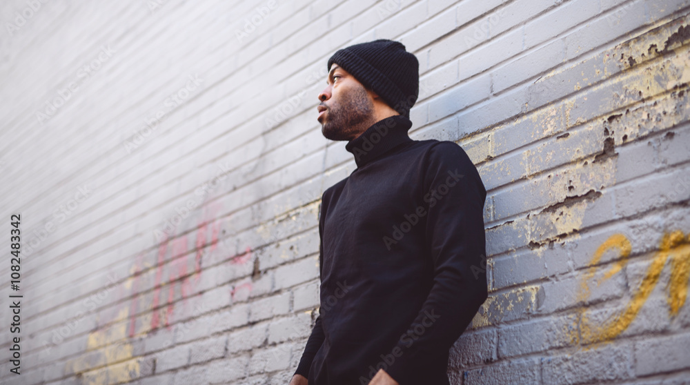 Fashion portrait of black man in city in modern spring or fall season outfit.