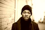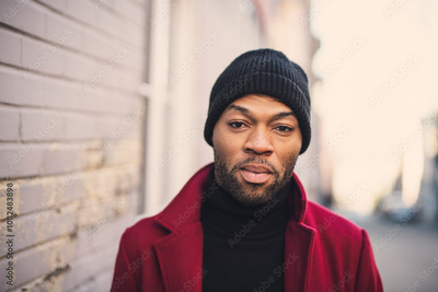 Fashion portrait of black man in city in modern spring or fall season outfit.
