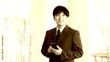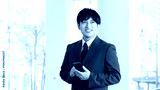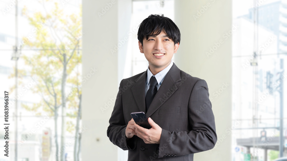 スマホを持つ笑顔の男性ビジネスマン