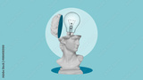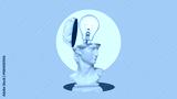 Creative thoughts and power are shown by electric light bulb from the head. Creative Ideas Brainstorm Thinking Inspiration and motivation