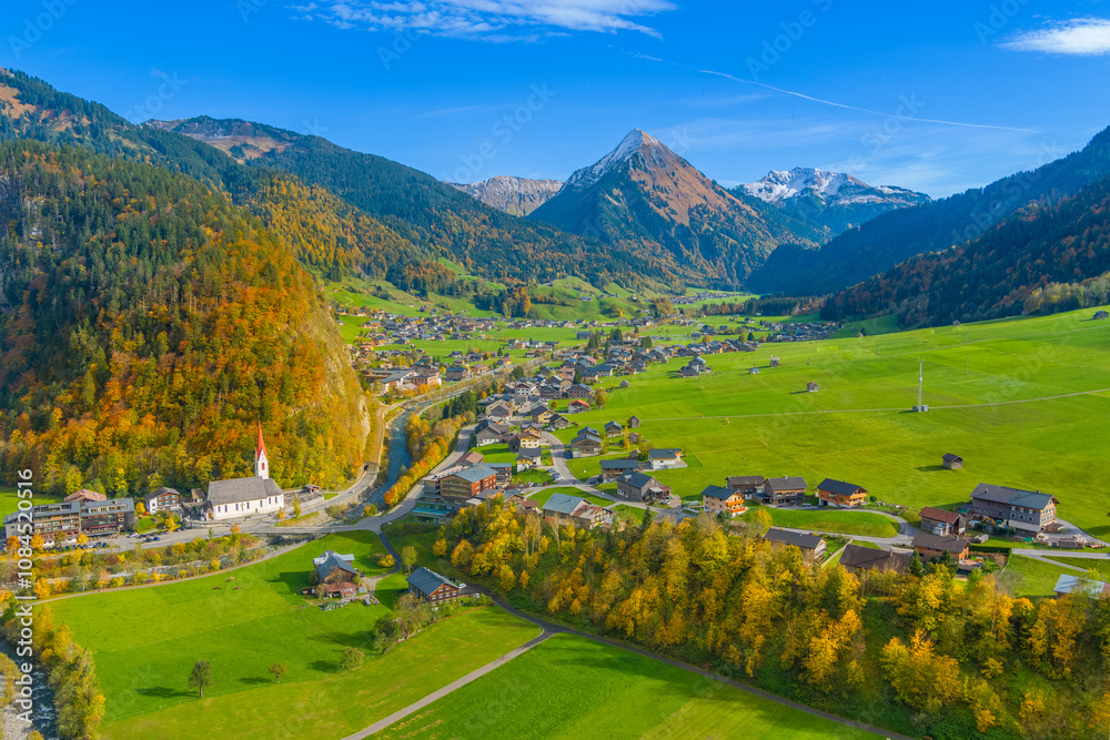 The village of AU in the region of Bregenzerwald, state of Vorarlberg, Austria, Drone Photography