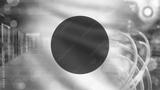 Server equipment. Flag of Japan. Telecommunication technologies. Northern equipment located in Japan. Big data center kidney hosting center from Japan. Industrial network technologies