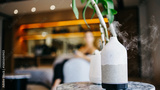 Happy professional business woman using mobile phone in modern office lobby. Concept of business, technology and modern communications.