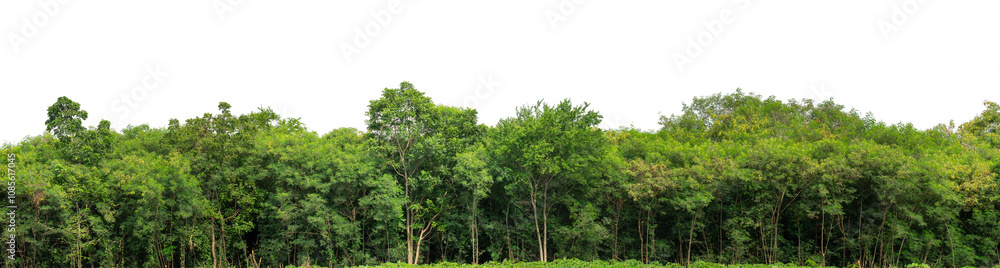 Green trees isolated are forest on transparent background.Forest and foliage in summer with cut path and alpha channel, high resolution.