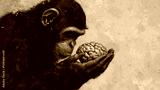Illustrated monkey offering a brain artistic representation close-up view conceptual art thought provocation unique perspective