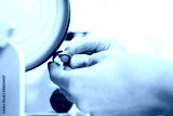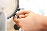 Ręczne tworzenie biżuterii.Jubiler poleruje biżuterię na polerce jubilerskiej.