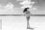 Happy beach summer fun Asian bikini woman running of joy on amazing white sand enjoying holidays on Caribbean tropical travel to paradise destination. Cheerful young girl on exotic getaway vacation.