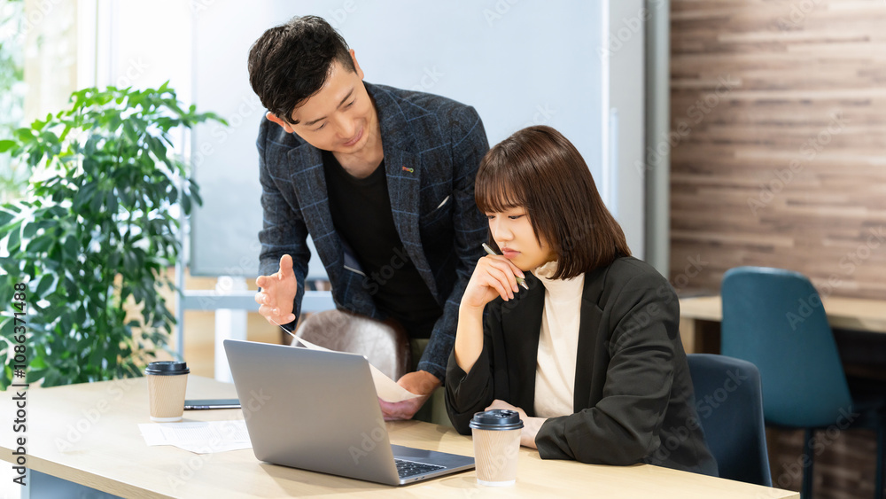 ミーティングをする男女2人のビジネスマン