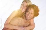 Man piggybacking woman