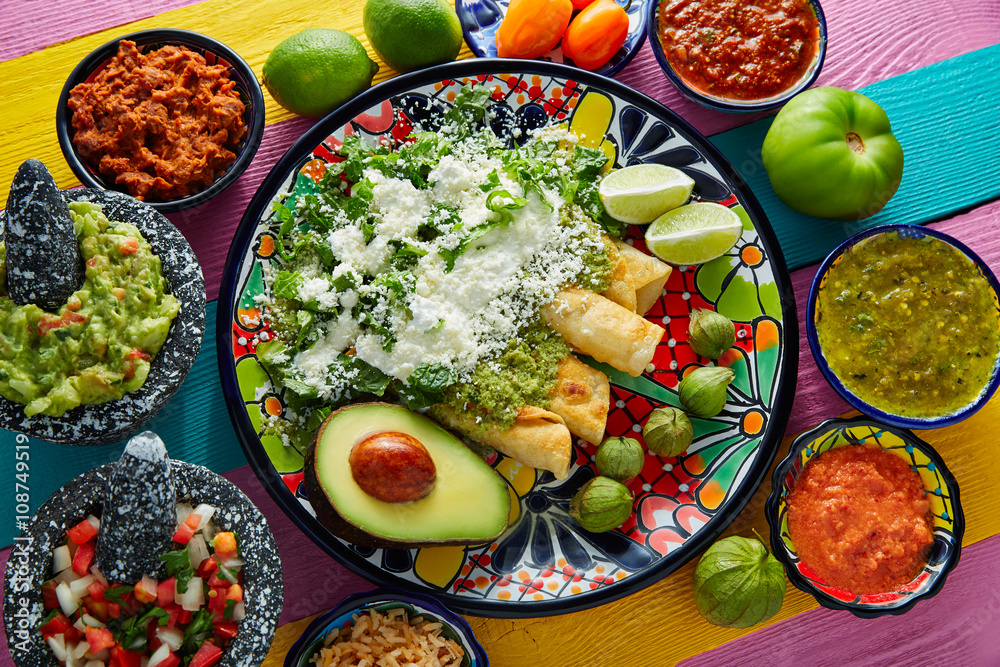 Green enchiladas Mexican food with guacamole