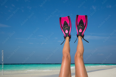 Woman relaxing on summer beach vacation holidays lying in sand.