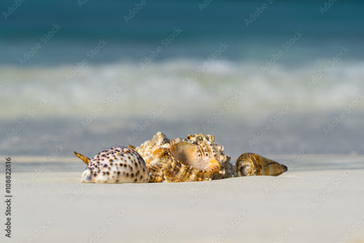 Sea shell on the sandy beach on tropical island