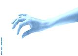 Human hand reaching out with fingers slightly curled. Isolated on a white background. Concept of gesture, reaching, or holding. Minimalist style