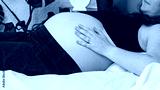 Pregnant Woman Resting Comfortably on Bed, Cradling Baby Bump with a Gentle Touch and Radiant Smile
