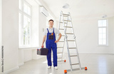 Portrait of a male happy worker or specialist holding a tools while repairing and maintaining an air conditioner system at home. This service ensures optimal performance and comfort.