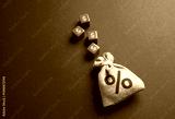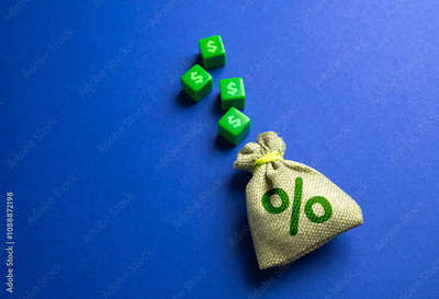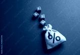 Money bag with interest and blocks with dollar symbols. Concept of deposits and loans. Earn on deposits. Dividends