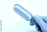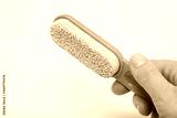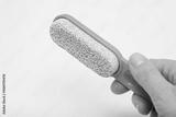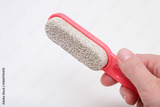 A detailed close up of a pink foot file positioned on a clean white surface