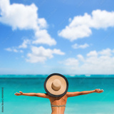 Summer Beach Vacation Happy Cheering Joyful WomanSummer Beach Vacation Happy Cheering Joyful Woman