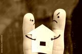 Finger art of family during quarrel. Concept of man and woman can not divide house after divorce.