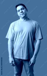 Young man making a disgusted expression while standing against a bright green background
