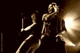 Rock band performing live on stage with passion and energy