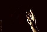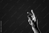 Hand Reaching Sign in Black and White on Textured Paper Background, Copy Space