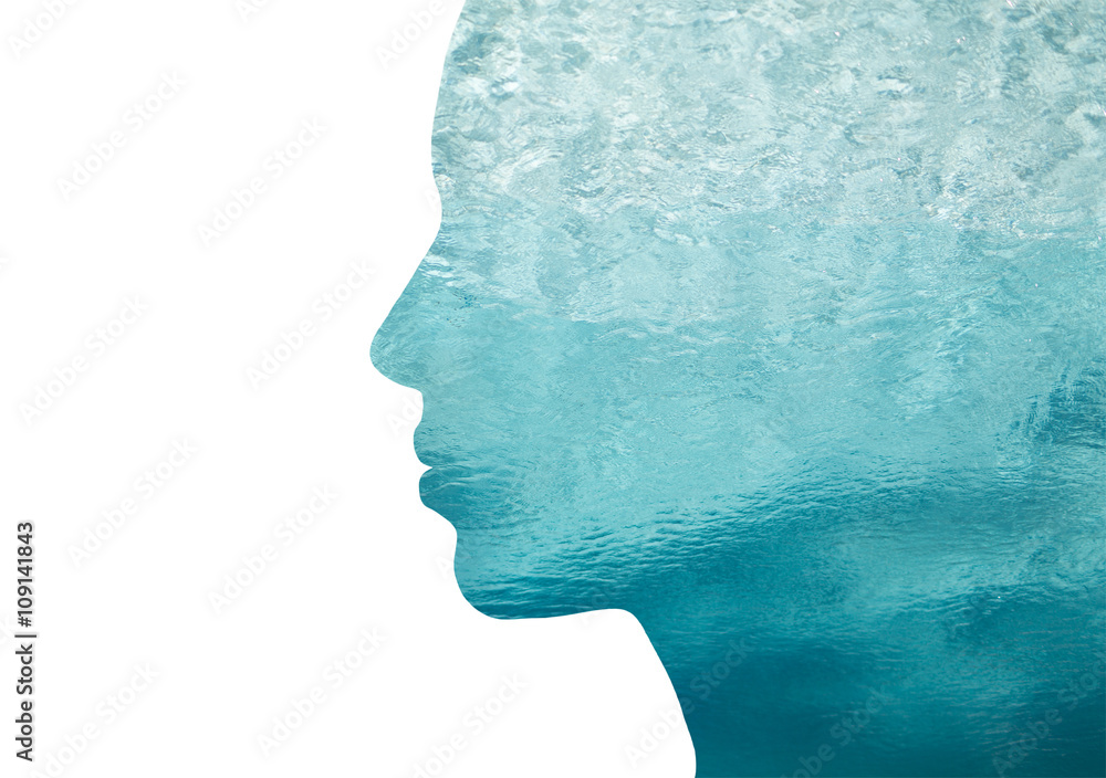 double exposure woman profile with water