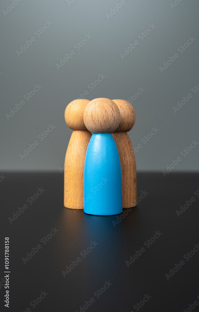 A leader at the head of his team. Management and cooperation. Leadership qualities and management talents.