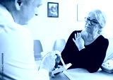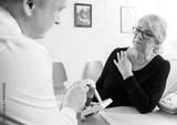 Woman Looking At Male Doctor Explaining Shoulder Rotator Cuff Mo
