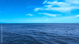 Nature of the beach and sea Summer with sunshine, sandy beaches, clear blue waters sparkling against the blue sky. On an island with good ecology and environment Background for summer vacation concept