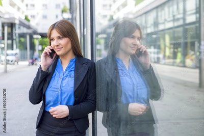 Business woman talking on smart phone.