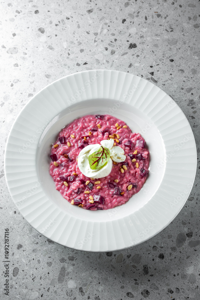 Risotto with Burrata, bitroot and Pesto