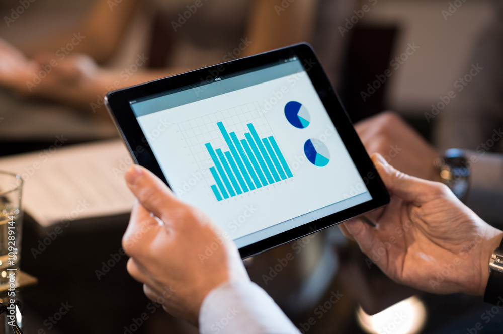 Digital tablet with business chart