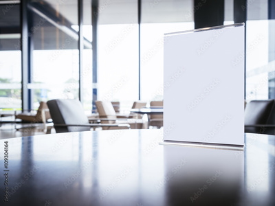 Mock up Menu Frame template on Table in Restaurant Cafe Background