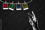 Hand in Black and White Choosing Between Different Life Values on Textured Paper Background, Copy Space