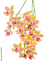 blooming twig of orange striped orchid, phalaenopsis is isolated
