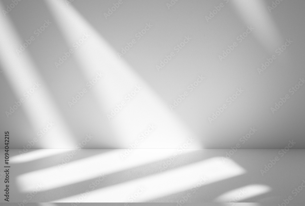 Wall interior background, studio and backdrops show products.with shadow from window color white and grey. background for text insertion and presentation product