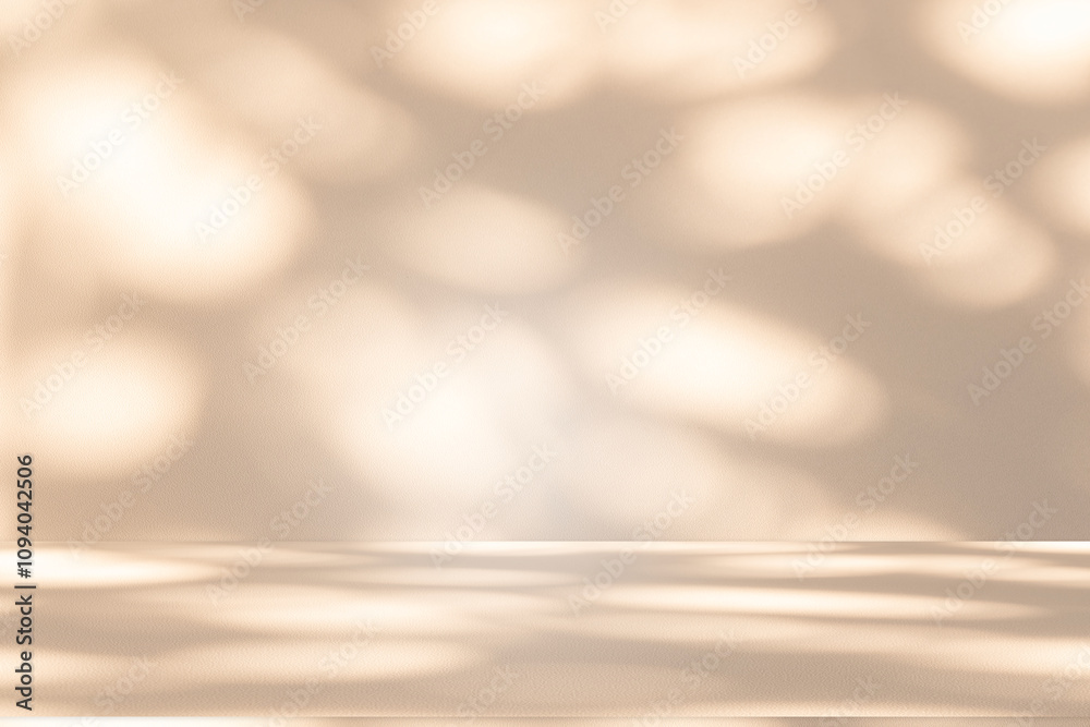 Wall interior background, studio and backdrops show products. with leaf shadow from window color beige and white. background for text insertion and presentation of product