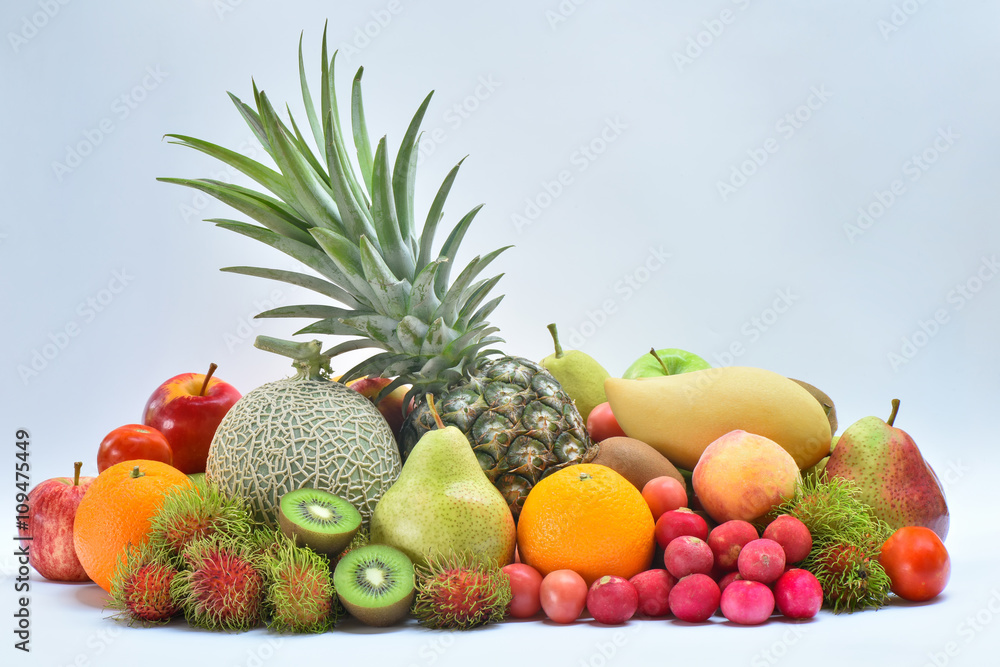 Tropical fruits on white background