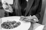 close-up of hands holding a piece of toast with toppings, over a plate of food with greens. The image captures a moment of enjoying a healthy meal, emphasizing fresh ingredients and a balanced diet.