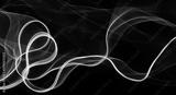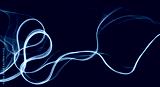 Photography of moving neon light with light trail on dark background, vibrant blue color