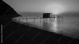 Morning at the famous fishing dives of Tekirdag province. The view of the traditional fishing harbor at sunrise. Ucmakdere beach, Marmara Sea. Turkey