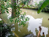 River water is dirty and brown due to flooding during the rainy season, rainy season flooding, river water overflowing